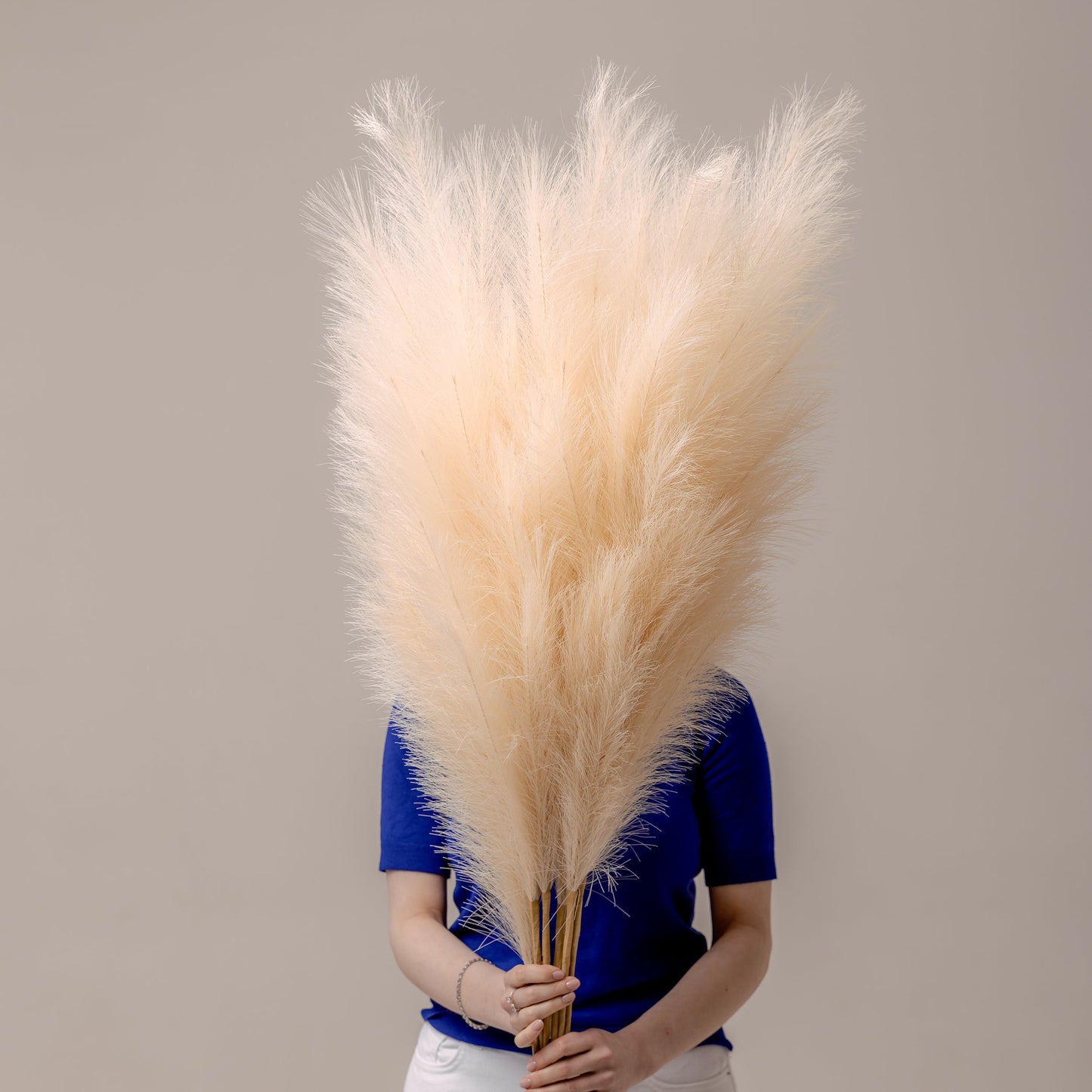 Extra fluffy and tall artificial pampas, 44.8”, 3 stems, 20 branches